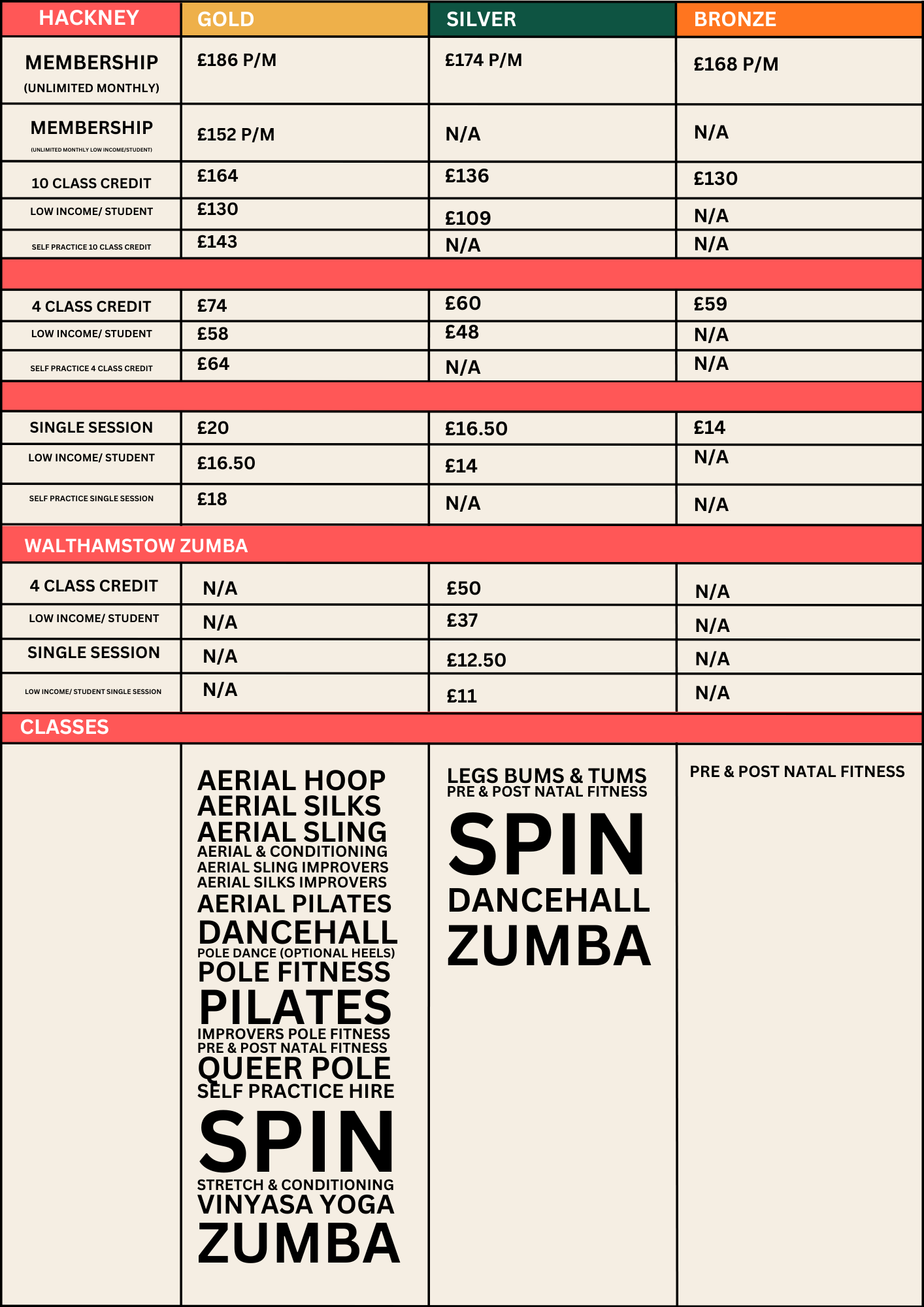 Our pricing model is based on ensuring we can offer fair and flexible options to different lifestyles, goals and needs. The Full Price List can be found below and we also offer low income / Blue Light Card / student options, with valid proof to be uploaded in your introductory health form.